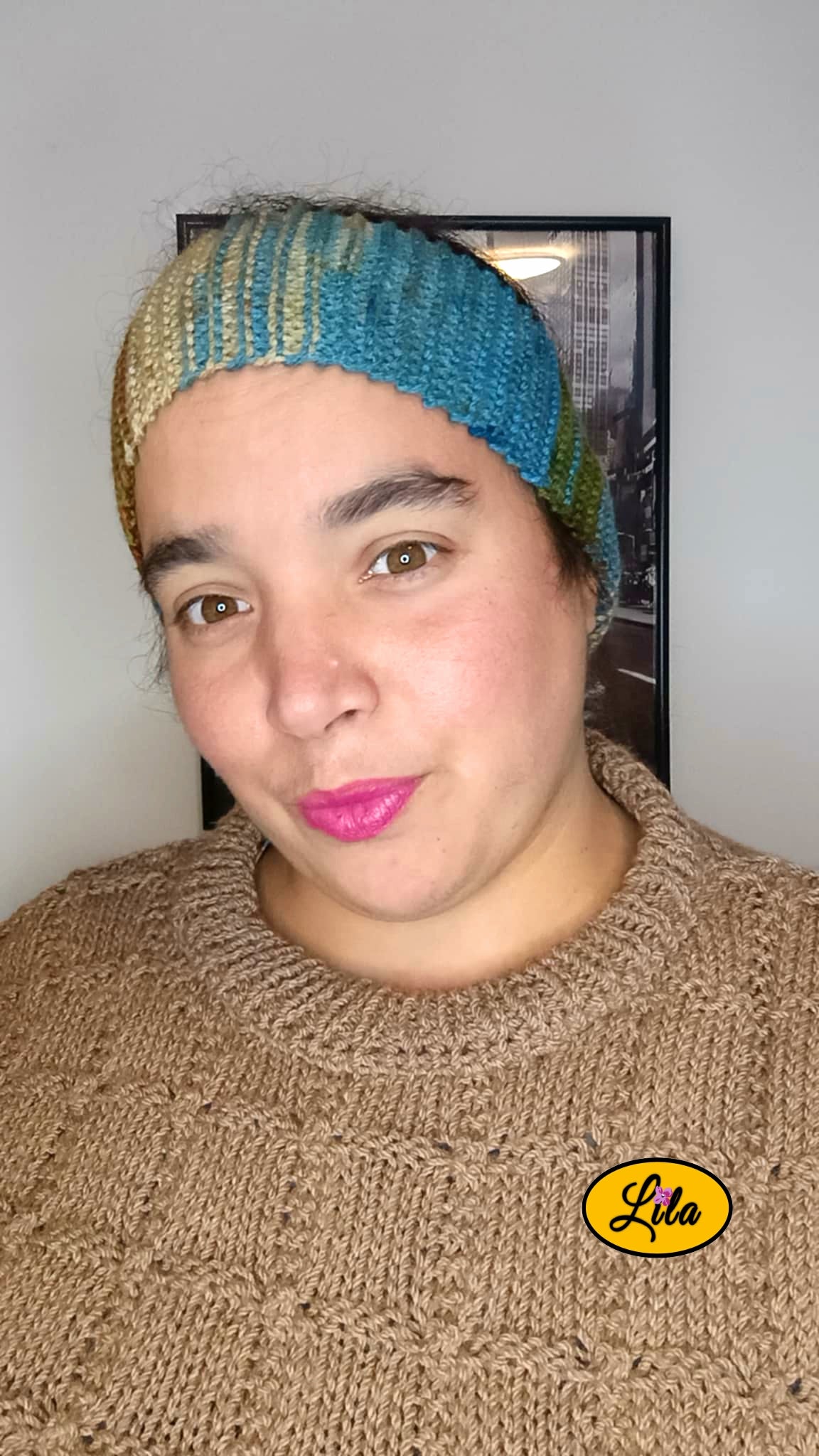 Ce bandeau doux et confortable a été tricoté à la main à partir de restes de laines soigneusement sélectionnées dans des tons de brun, bleu, vert et beige. Chaque pièce est unique grâce au mélange harmonieux des couleurs, créant un motif naturel et chaleureux.
