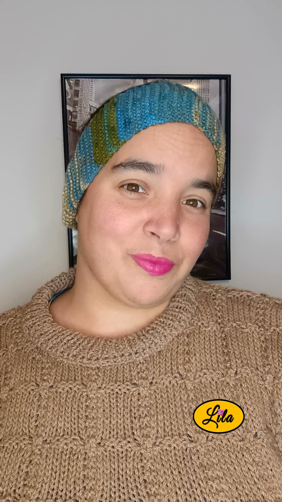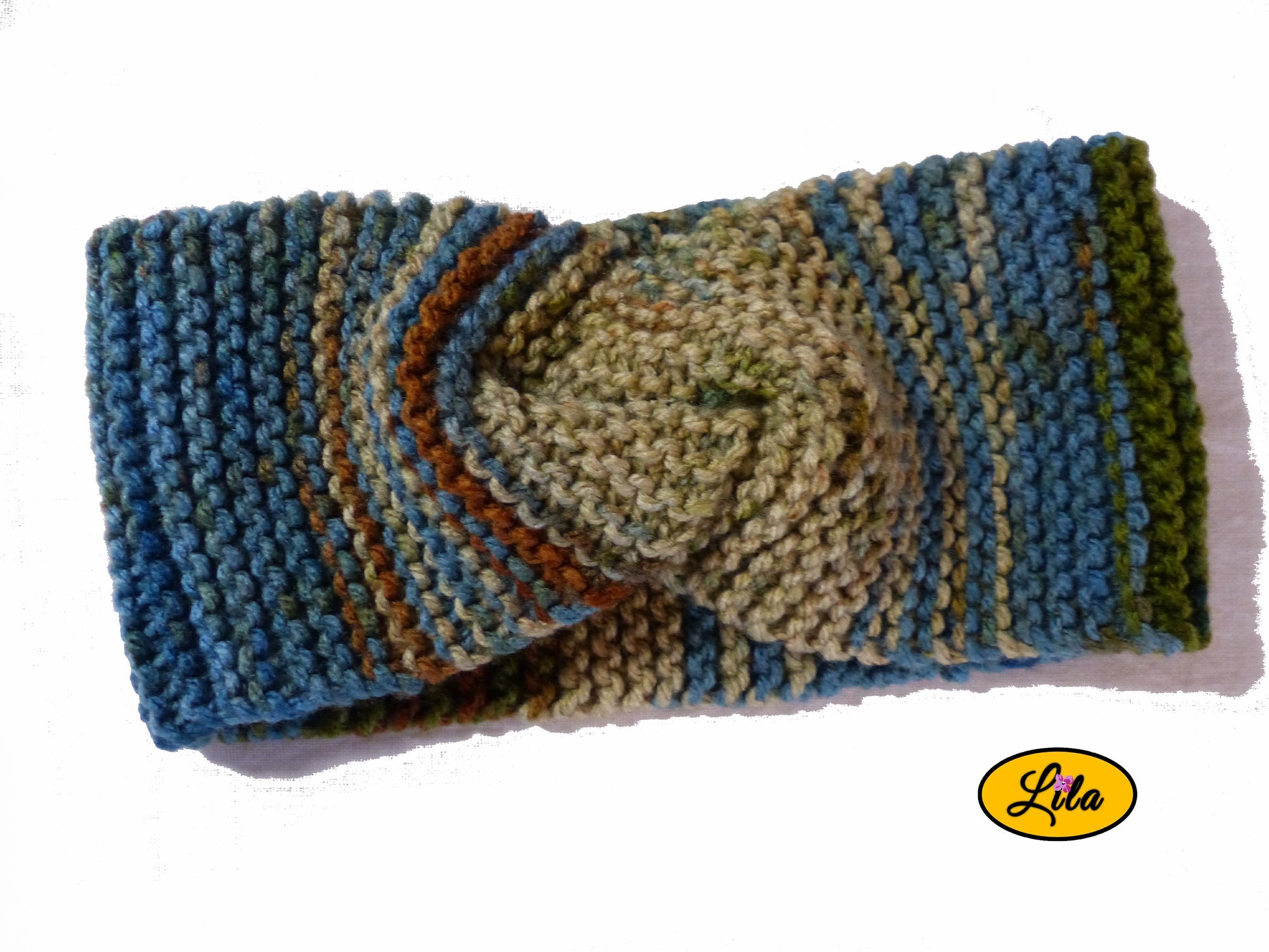 Ce bandeau doux et confortable a été tricoté à la main à partir de restes de laines soigneusement sélectionnées dans des tons de brun, bleu, vert et beige. Chaque pièce est unique grâce au mélange harmonieux des couleurs, créant un motif naturel et chaleureux.