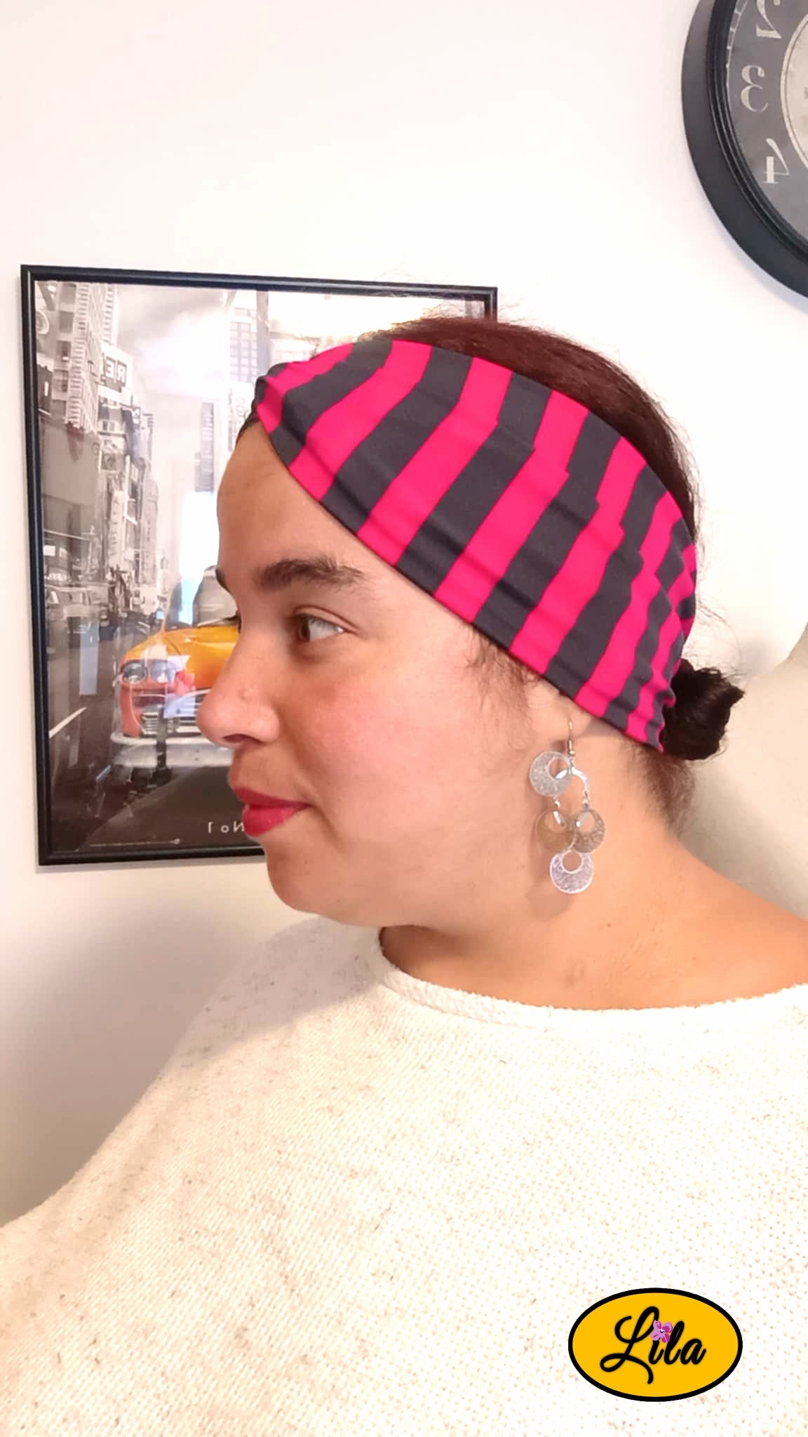 Ce bandeau rose délicat, parcouru de lignes grises verticales, marie douceur et élégance graphique. La verticalité de son motif affine et allonge visuellement, tout en apportant une touche contemporaine et raffinée. Un accessoire subtil mais plein de caractère, idéal pour illuminer une tenue simple ou parfaire un look plus habillé.