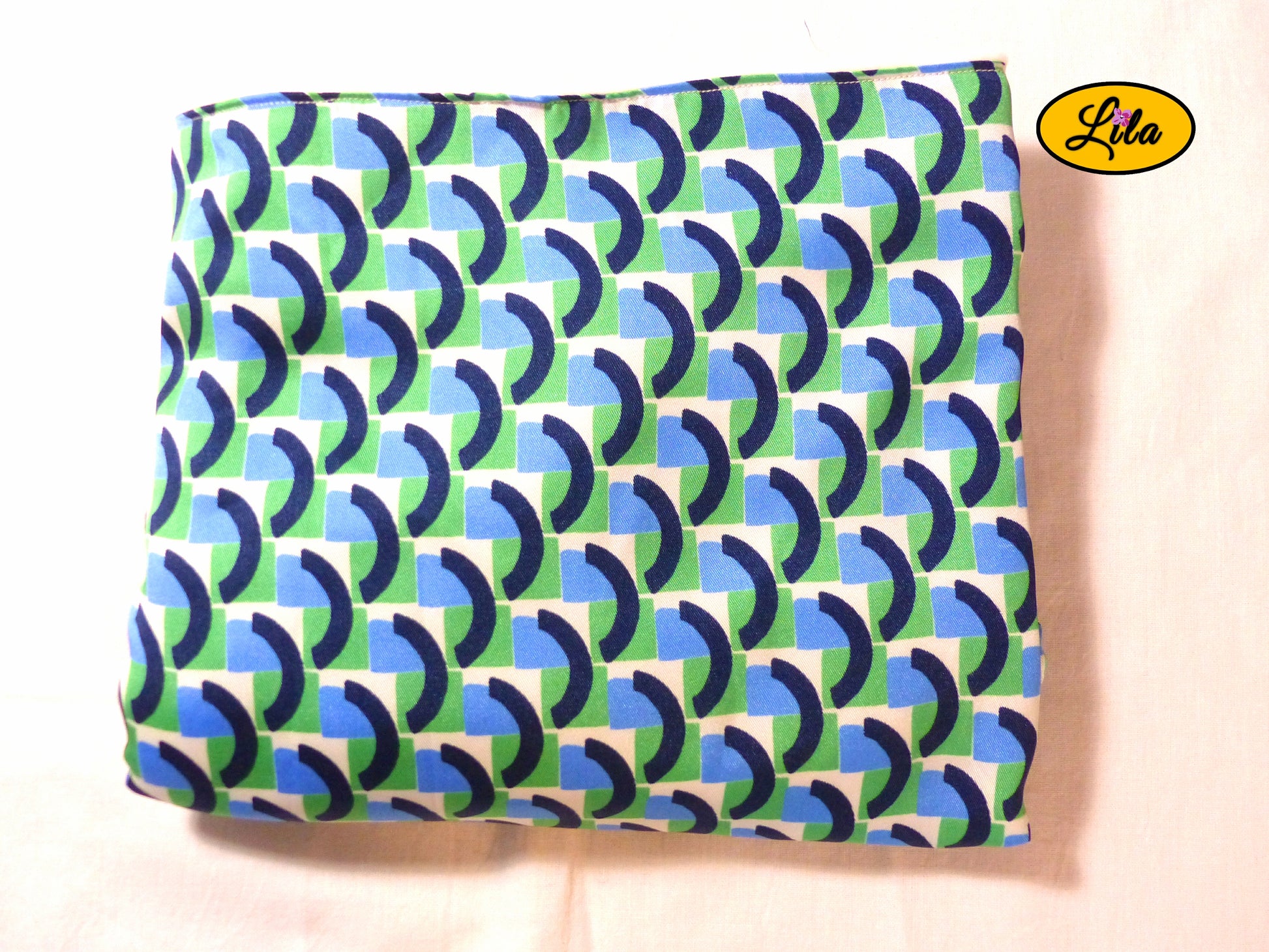 L’extérieur est confectionné dans un tissu léger aux motifs légèrement vintage, mêlant des tons de vert, blanc et bleu pour un rendu délicat et harmonieux. L’intérieur est doublé d’un polaire blanc, chaud et moelleux, parfait pour apporter confort et douceur durant les journées fraîches.