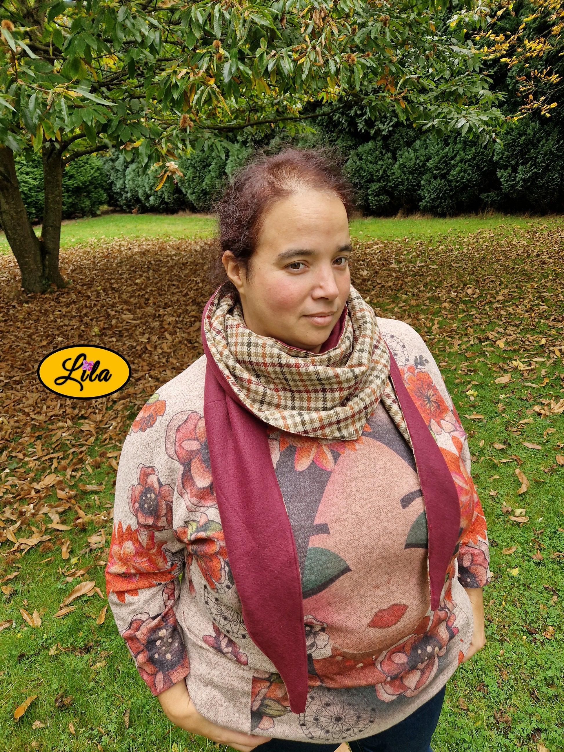 Sa forme triangulaire permet de le porter de multiples façons : noué autour du cou, posé sur les épaules ou utilisé comme accessoire mode.