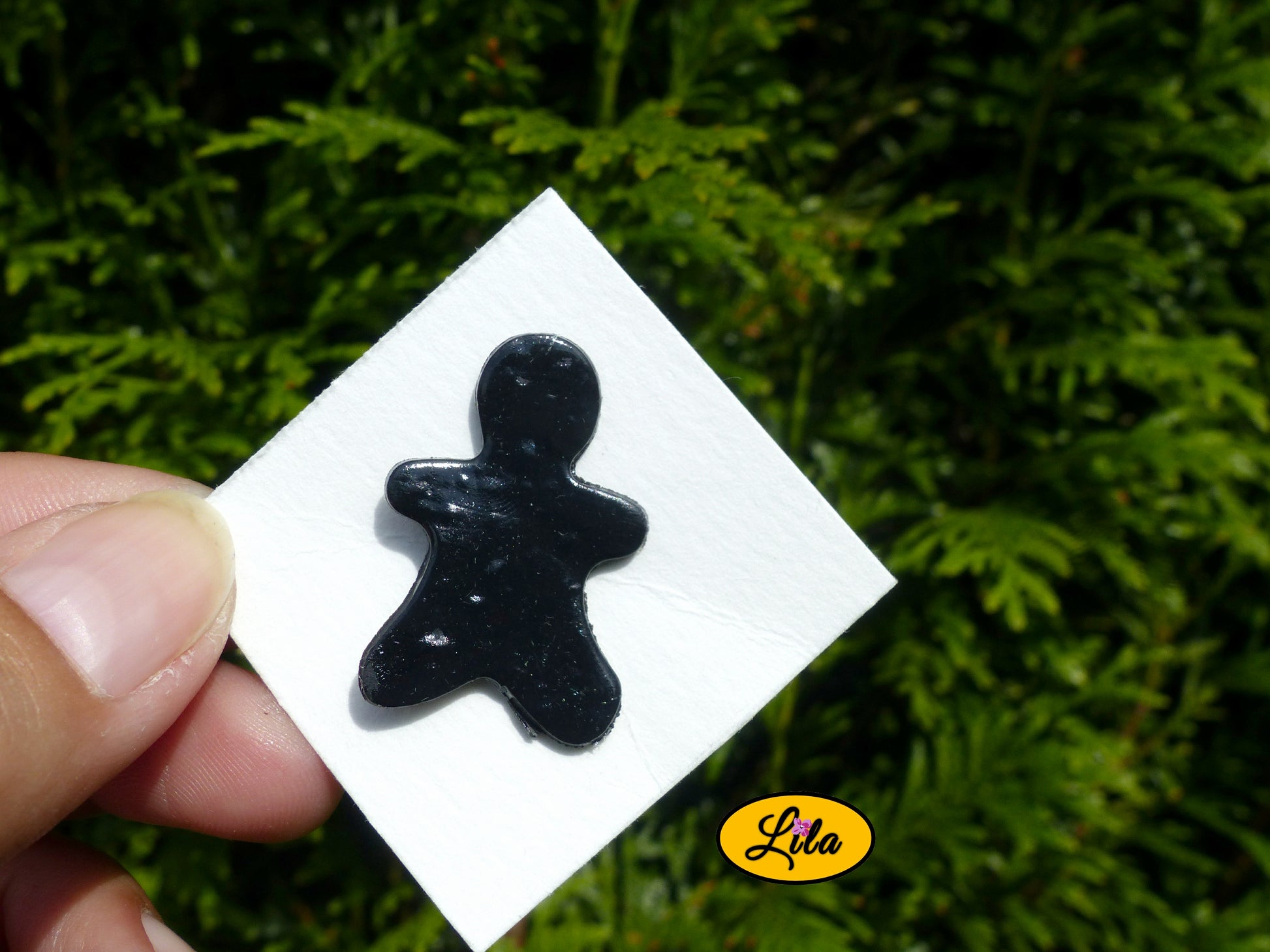 Ce pin’s original en forme de petit bonhomme noir apporte une touche ludique et minimaliste à votre tenue. Réalisé à la main en pâte polymère, il se porte aussi bien sur un sac, une veste ou un bonnet.