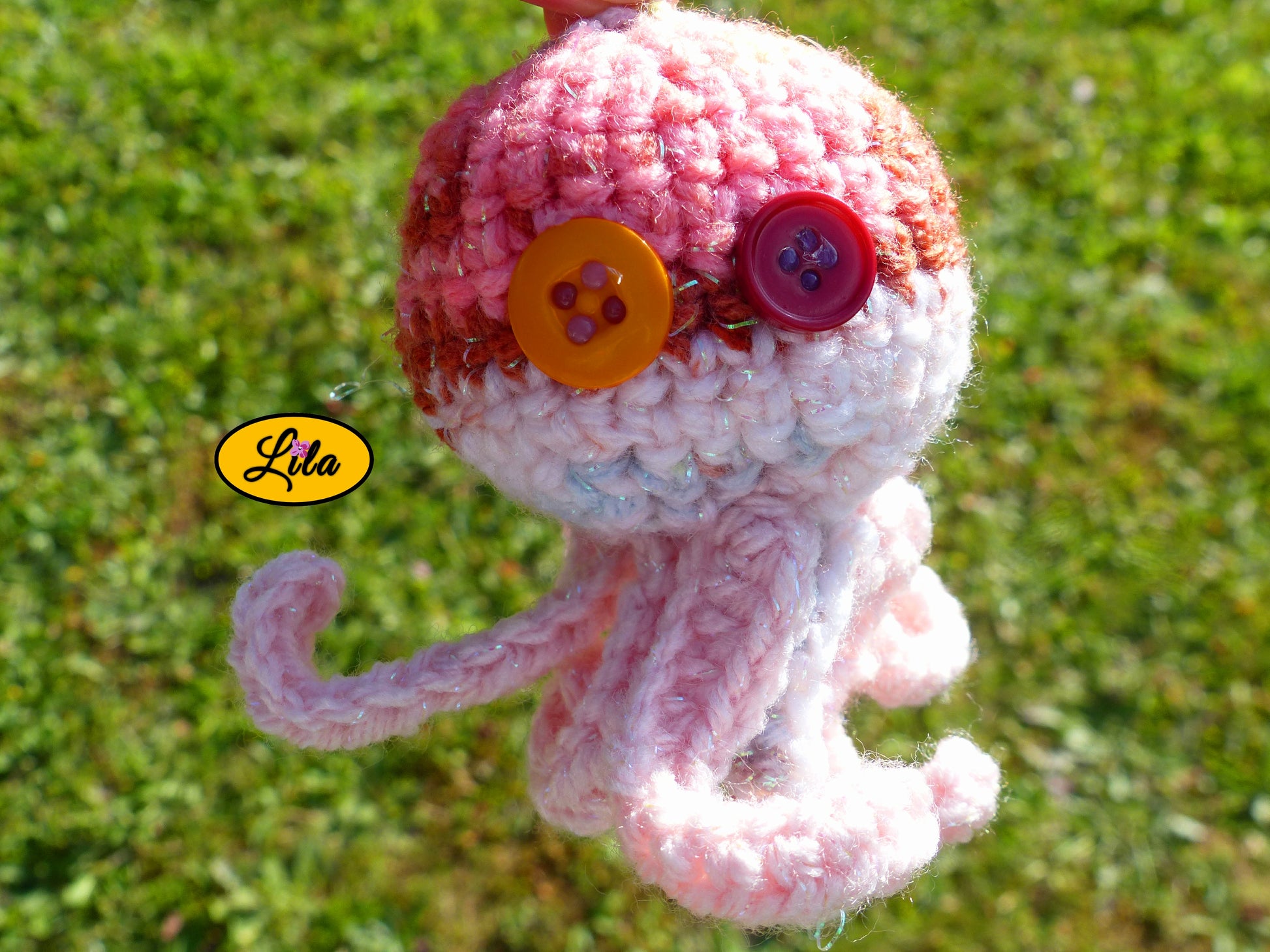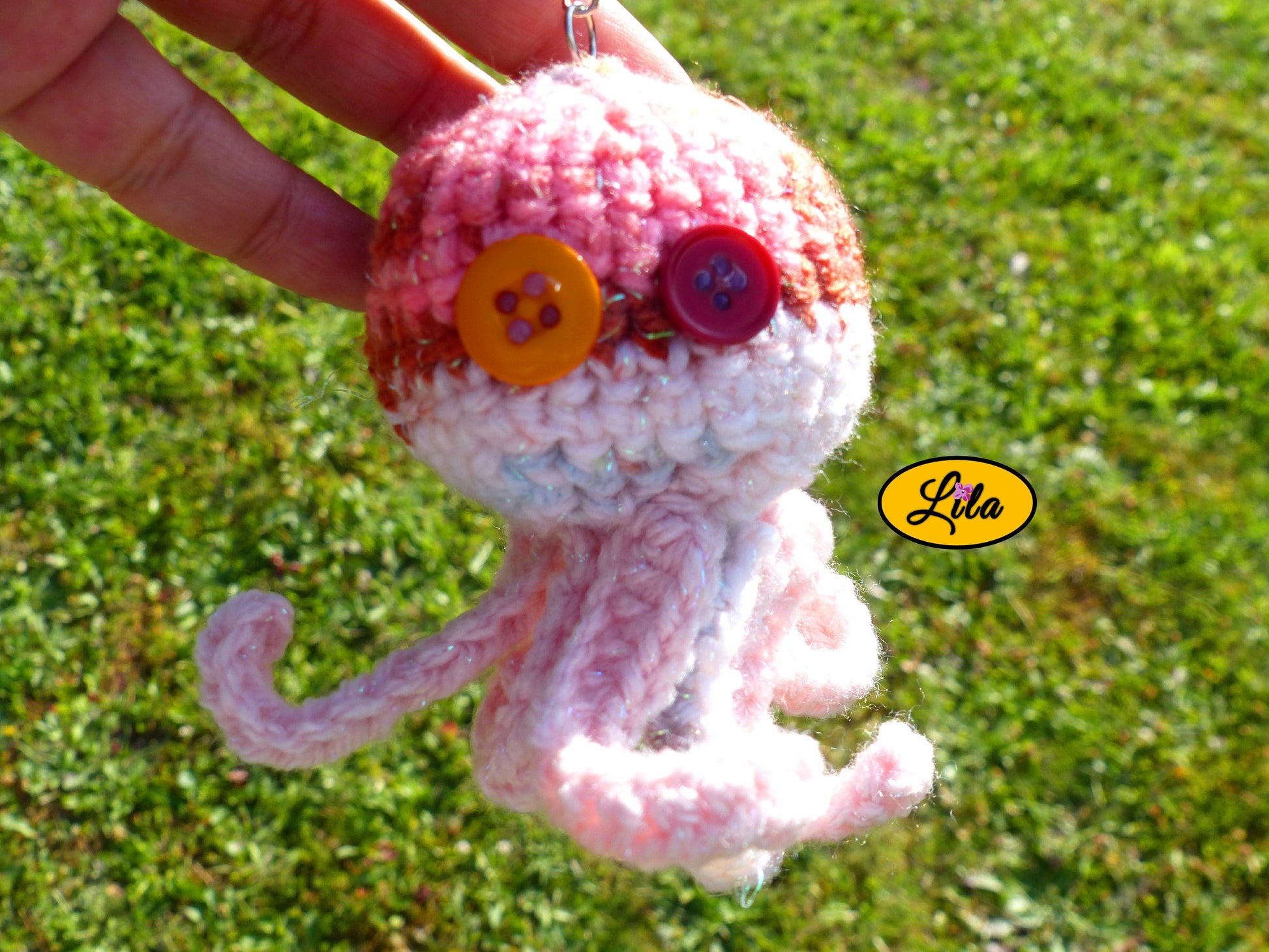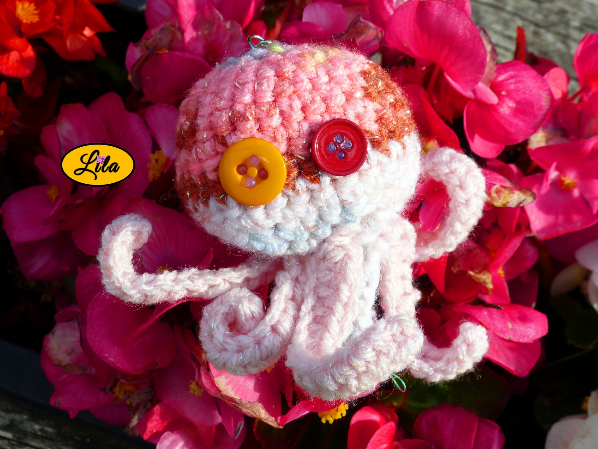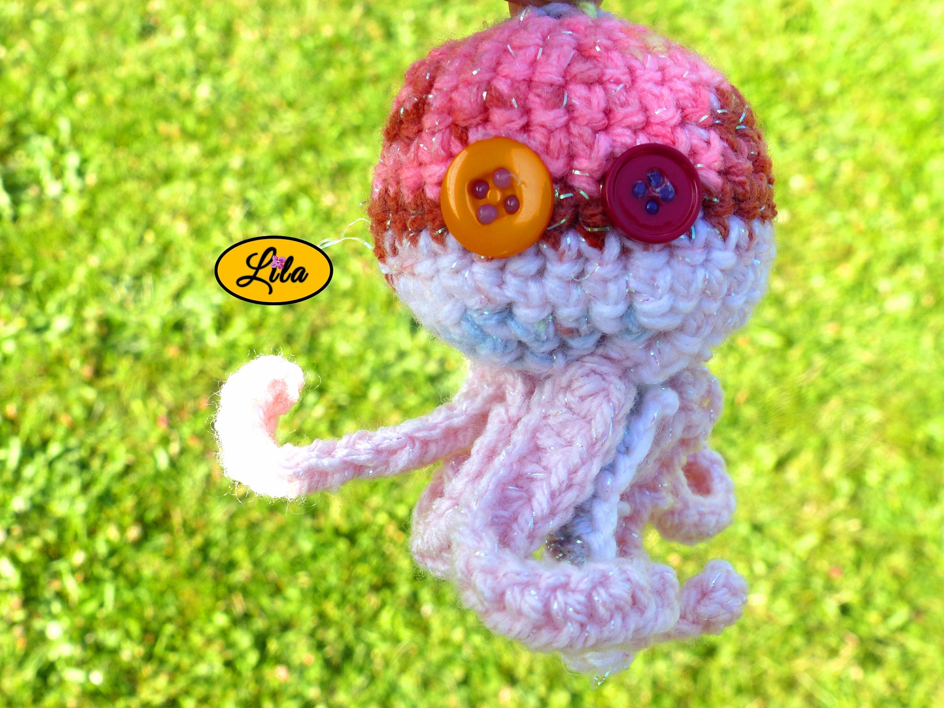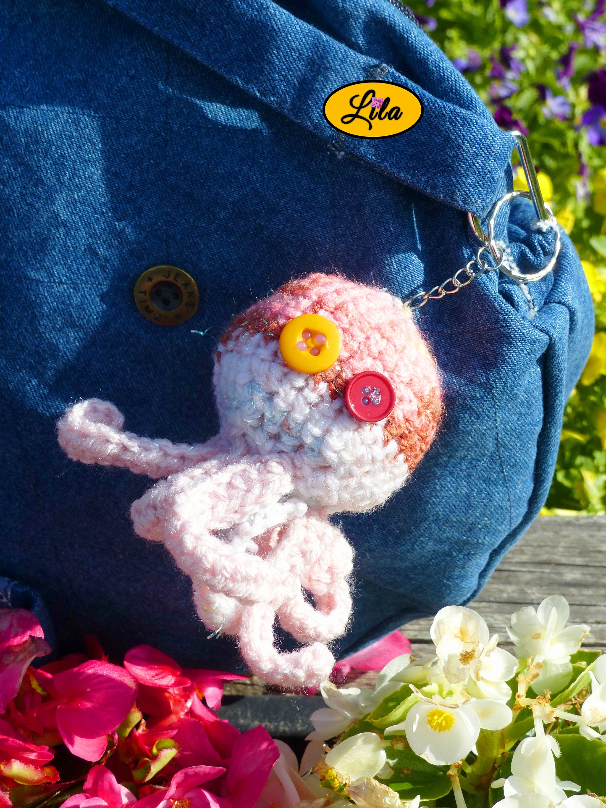 Adoptez ce charmant petit poulpe en porte-clés ou en décoration de sac, réalisé à partir de restes de laine acrylique/polyester et rembourré de polyester lavable en machine. Un accessoire original, ludique et responsable qui apportera une touche de fantaisie à vos affaires.