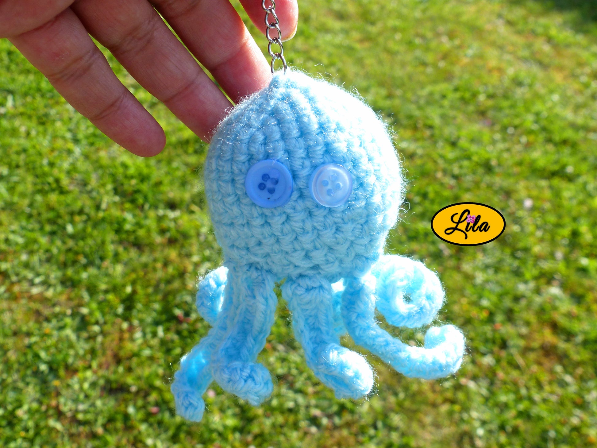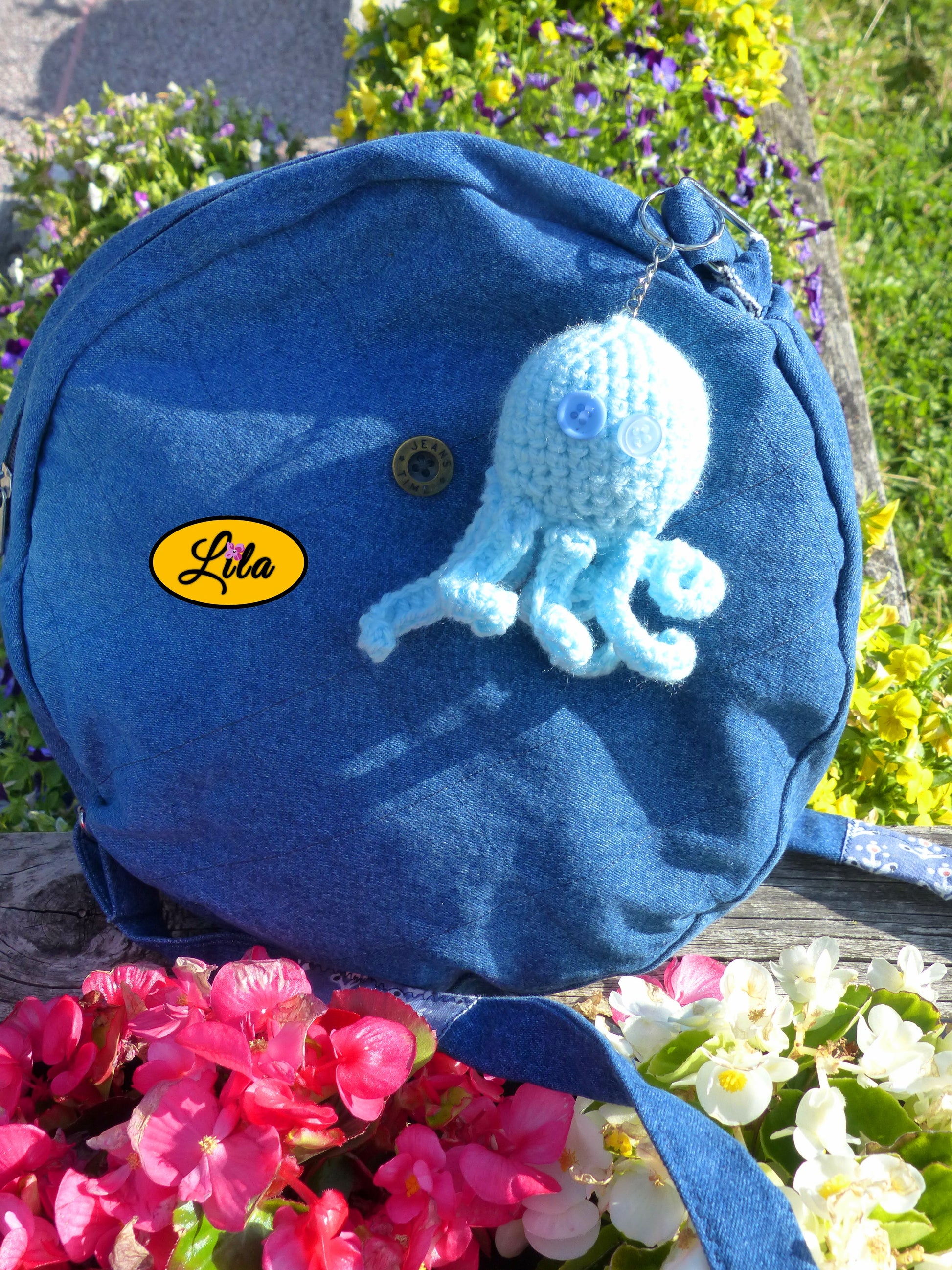 Adoptez ce charmant petit poulpe en porte-clés ou en décoration de sac, réalisé à partir de restes de laine acrylique/polyester et rembourré de polyester lavable en machine. Un accessoire original, ludique et responsable qui apportera une touche de fantaisie à vos affaires.