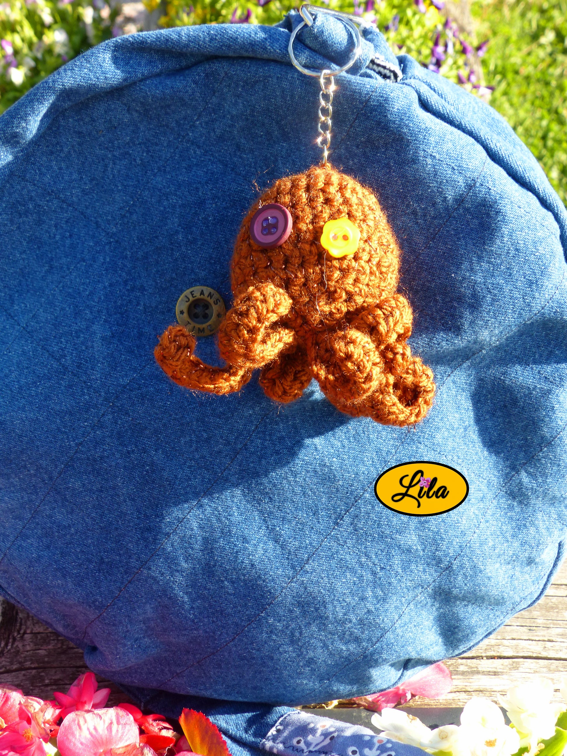 Adoptez ce charmant petit poulpe en porte-clés ou en décoration de sac, réalisé à partir de restes de laine acrylique/polyester et rembourré de polyester lavable en machine. Un accessoire original, ludique et responsable qui apportera une touche de fantaisie à vos affaires.
