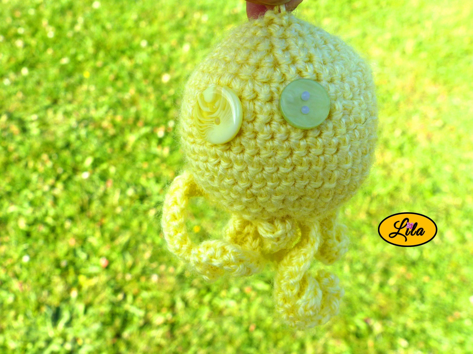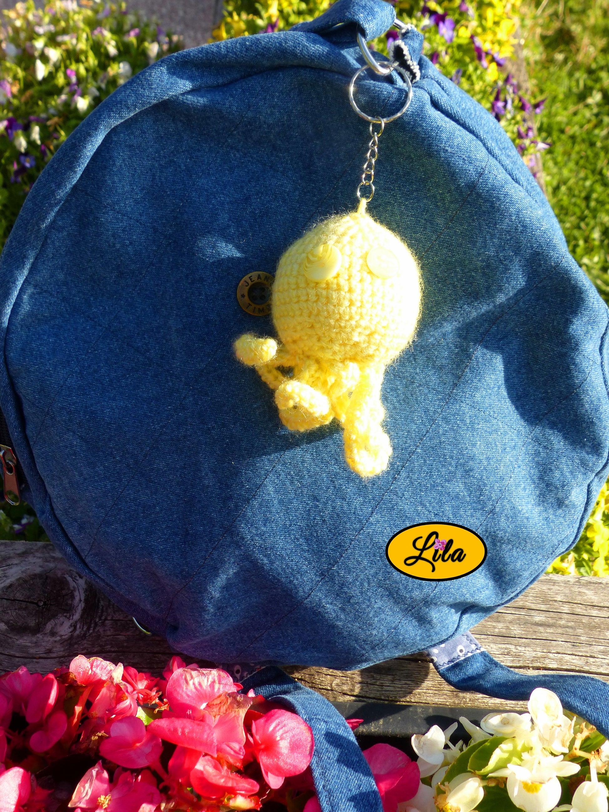 Adoptez ce charmant petit poulpe en porte-clés ou en décoration de sac, réalisé à partir de restes de laine acrylique/polyester et rembourré de polyester lavable en machine. Un accessoire original, ludique et responsable qui apportera une touche de fantaisie à vos affaires.