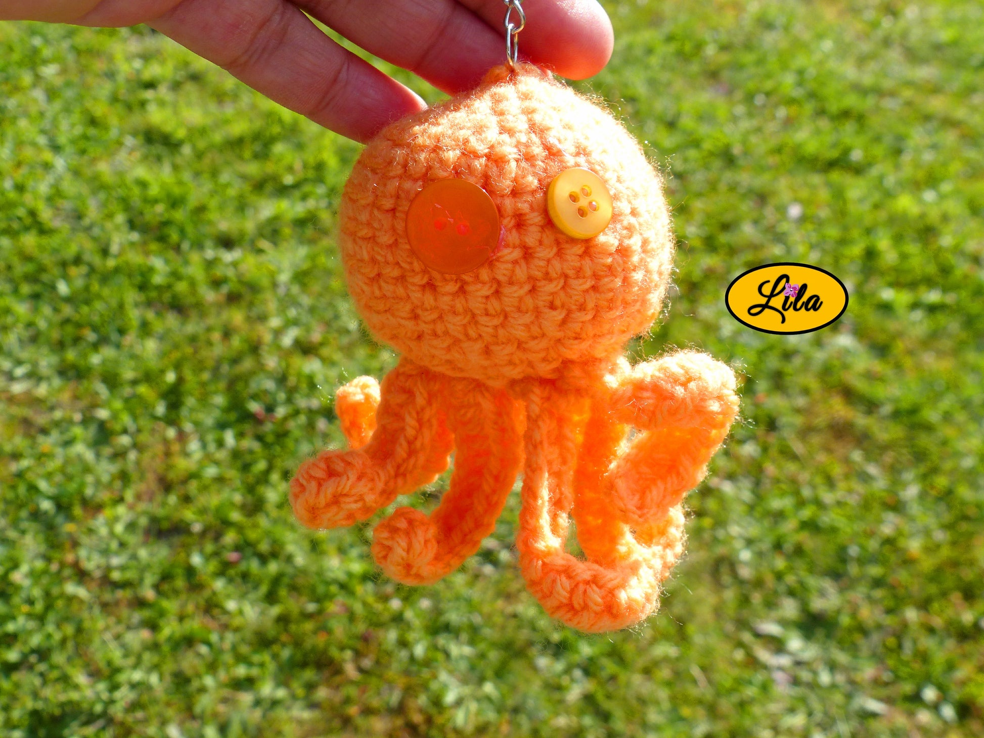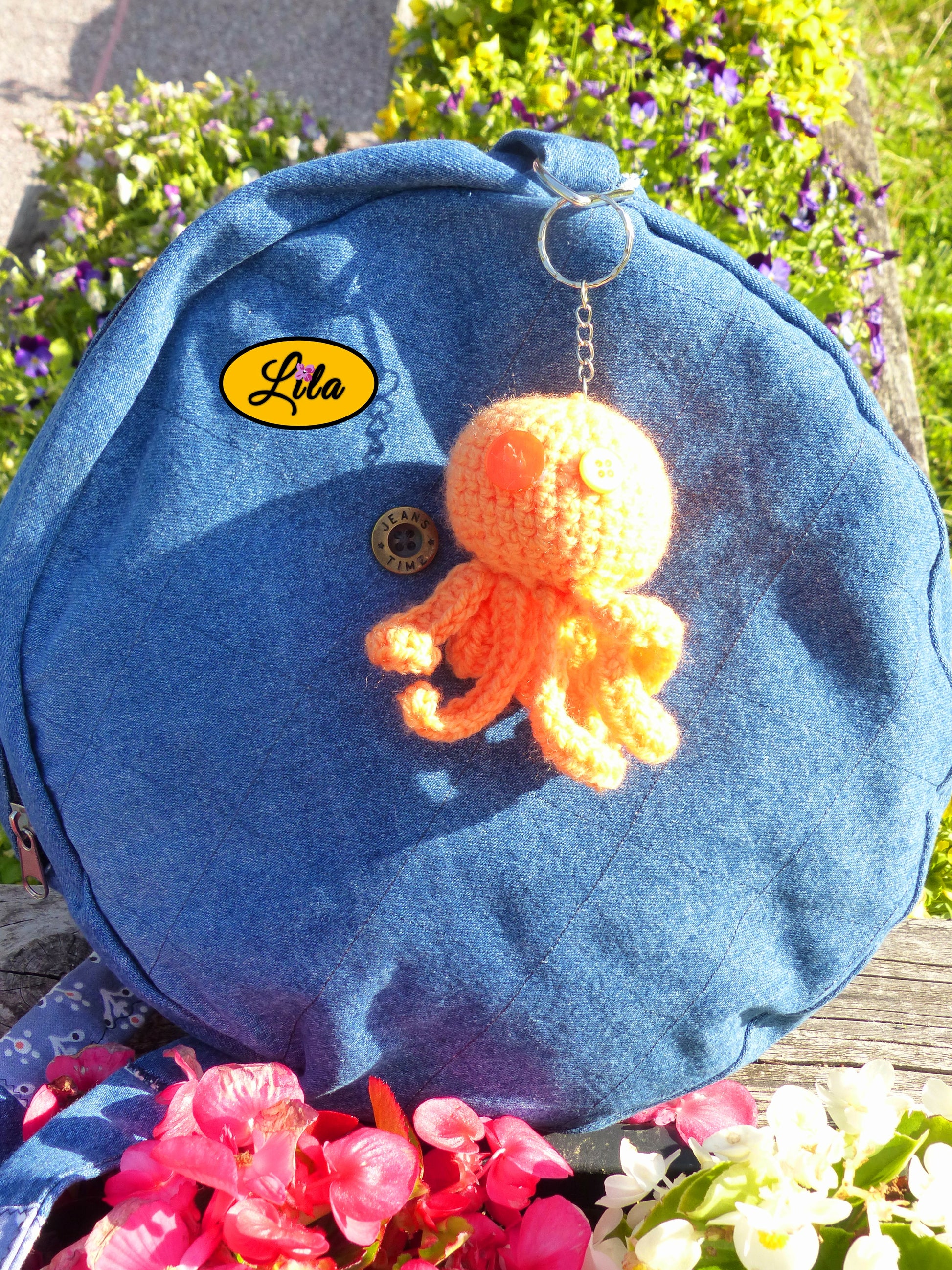 Adoptez ce charmant petit poulpe en porte-clés ou en décoration de sac, réalisé à partir de restes de laine acrylique/polyester et rembourré de polyester lavable en machine. Un accessoire original, ludique et responsable qui apportera une touche de fantaisie à vos affaires.