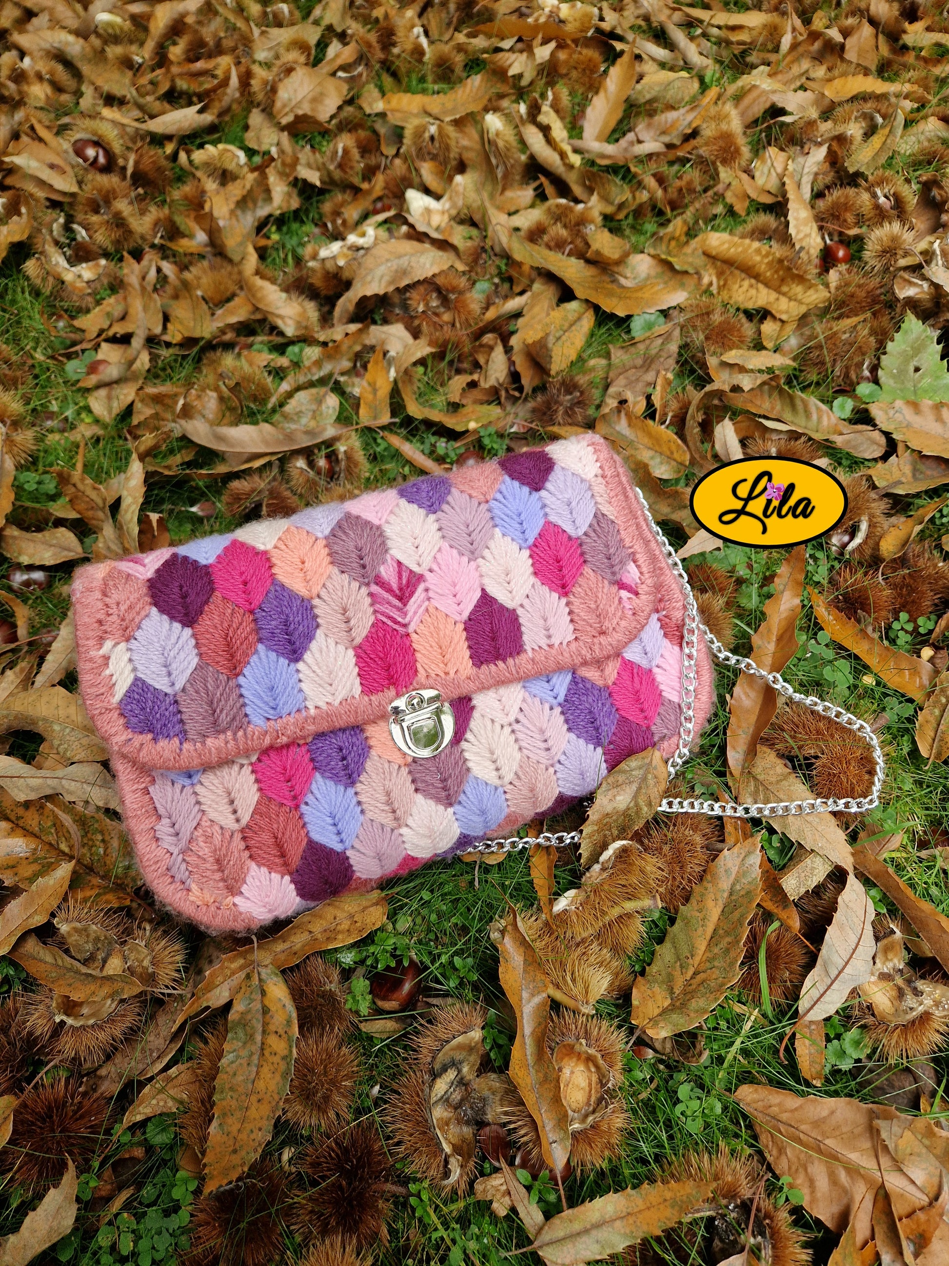 Il est orné de brins de laine dans les tons de rose et de mauve, soigneusement brodés à partir de restes de laines acrylique/polyester. Ce motif tout en relief apporte une touche artisanale et poétique, rendant chaque sac unique.