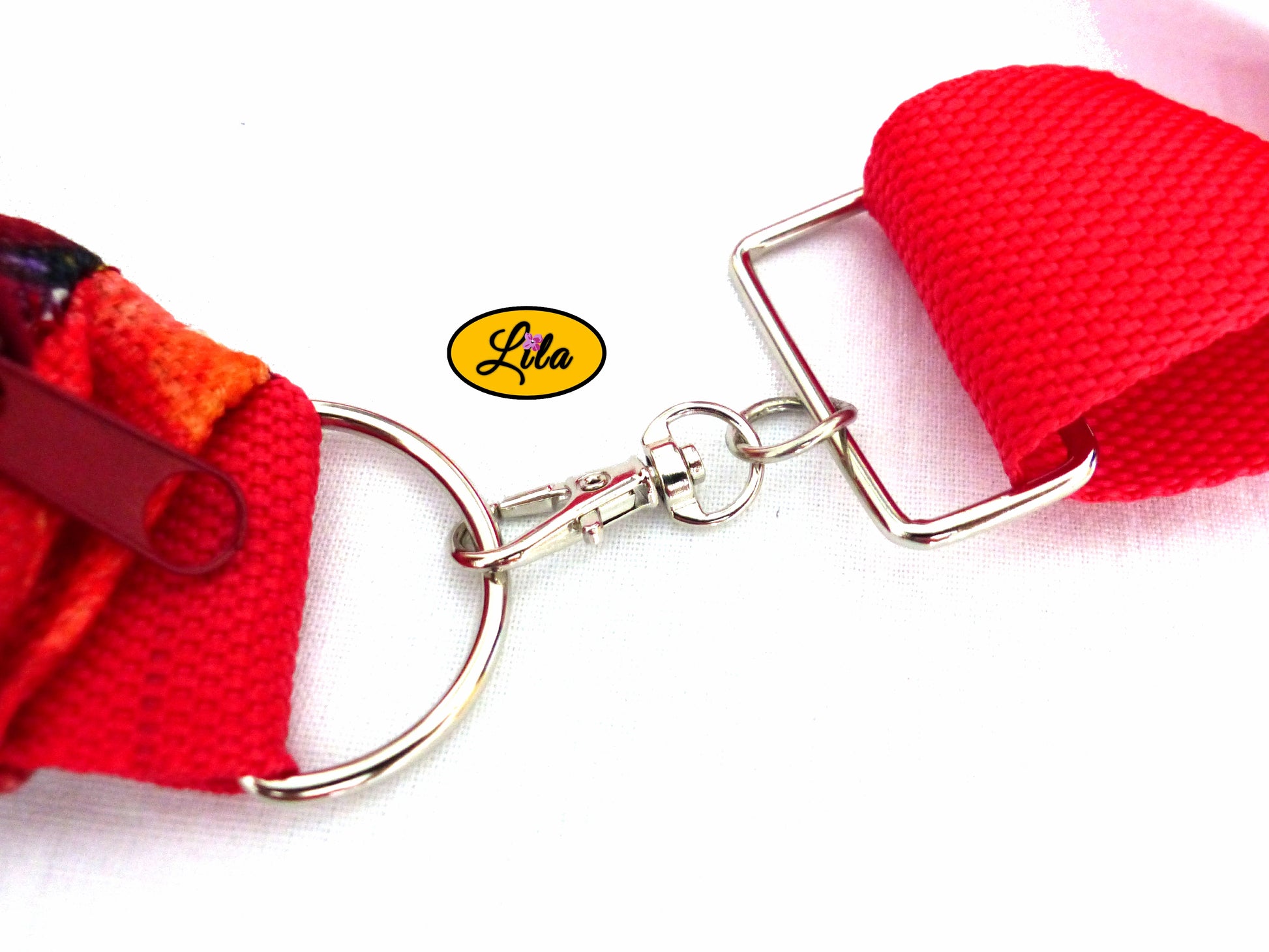 L’intérieur est doublé d’un tissu blanc crème, issu d’une toile isolante, offrant une bonne tenue et une belle durabilité. La fermeture éclair bordeaux complète harmonieusement les teintes du motif, tandis que la sangle rouge et les attaches en métal argenté viennent souligner l’ensemble avec élégance.