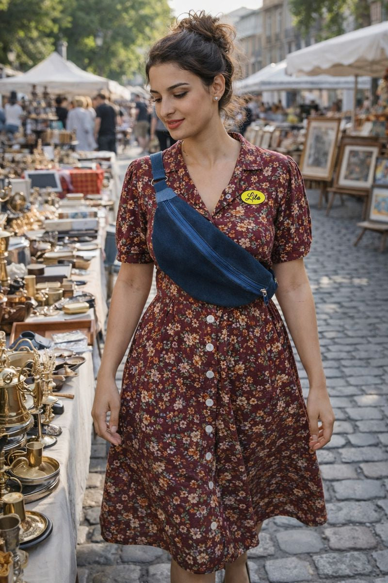 Ce sac banane a été réalisé à partir de restes de jeans foncé, associés à du jeans plus clair sur les côtés, pour créer un jeu de contrastes subtil et moderne. Un accessoire à la fois pratique, robuste et engagé, issu de l’upcycling.