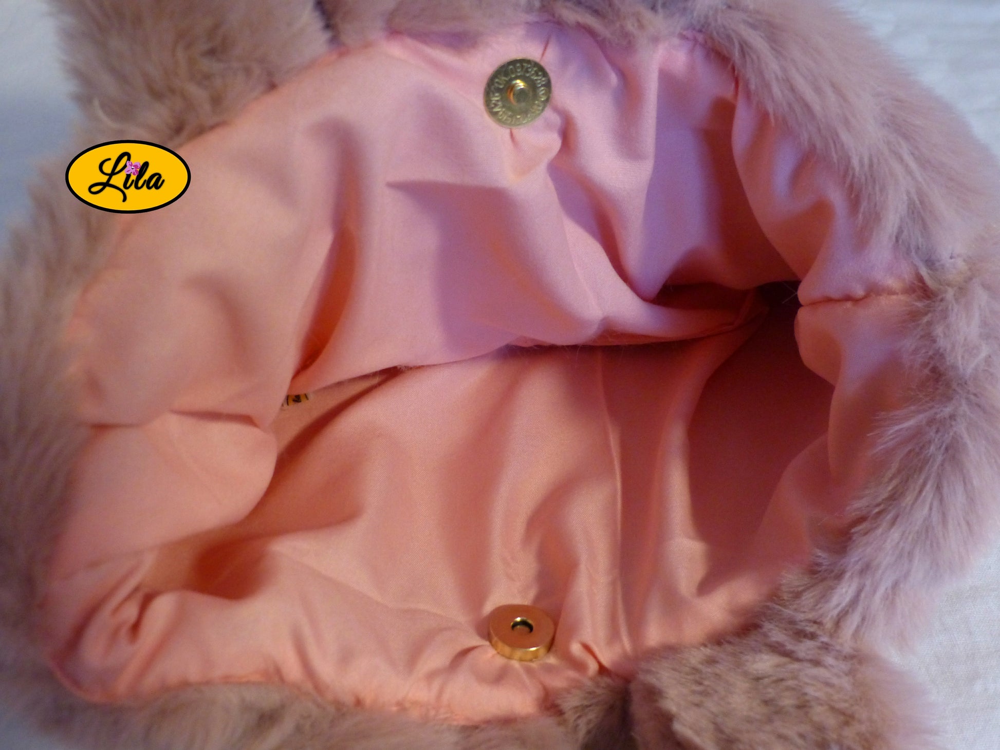 Ce sac à main a été soigneusement confectionné à partir d’un tapis en fausse fourrure vieux rose, lui offrant une seconde vie toute douce et élégante. Sa texture moelleuse et sa teinte poudrée en font un accessoire aussi réconfortant que raffiné.